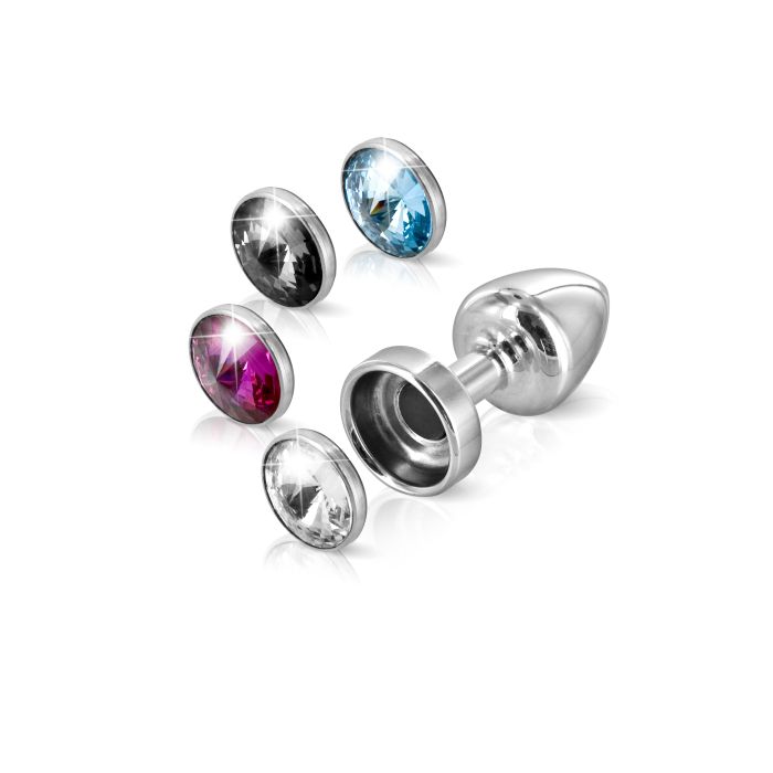Anni Magnet T1 Black cristal/fushia Анальный плаг с 2мя заменяемыми кристаллами Diogol, диаметр 2.50 см можно купить аналоги этого секс товара в Асткол по оптовой цене онлайн