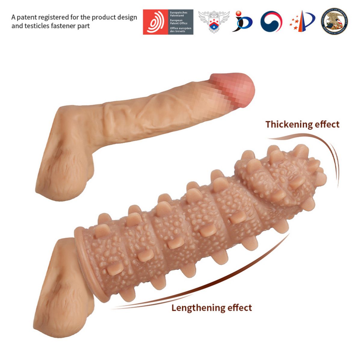 Насадка очень эластичная, имеет широкие шипики и рельеф по всей поверхности, для стимуляции эрогенных зон партнера, увеличивает толщину головки и ствола пениса.