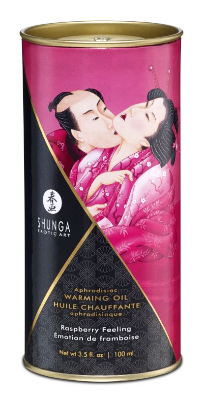 Разогревающее и съедобное масло для тела с натуральными вкусом Малиновое чувство Shunga Afrodisiac Warming Oil.