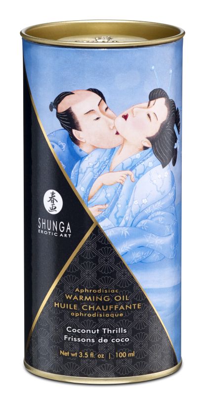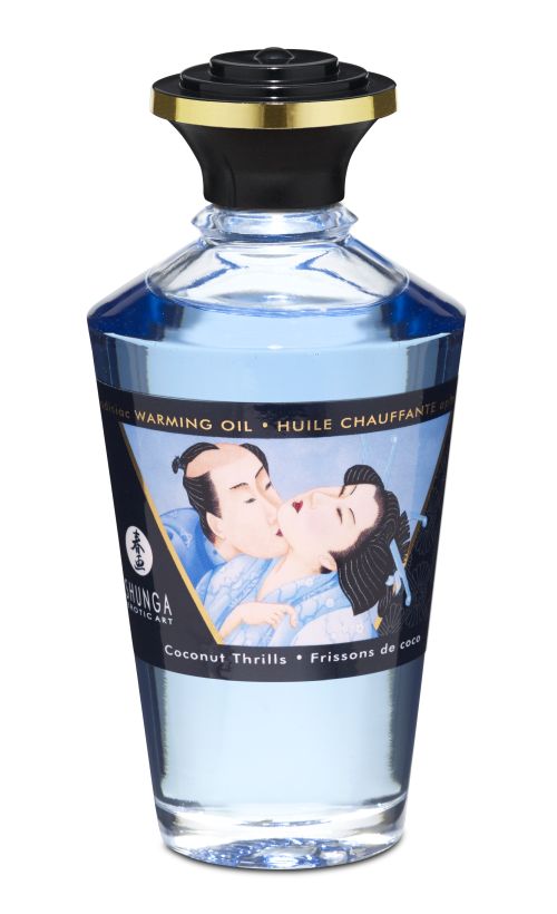 Разогревающее и съедобное масло для тела с натуральными вкусом Кокосовое волнение Shunga Afrodisiac Warming Oil.