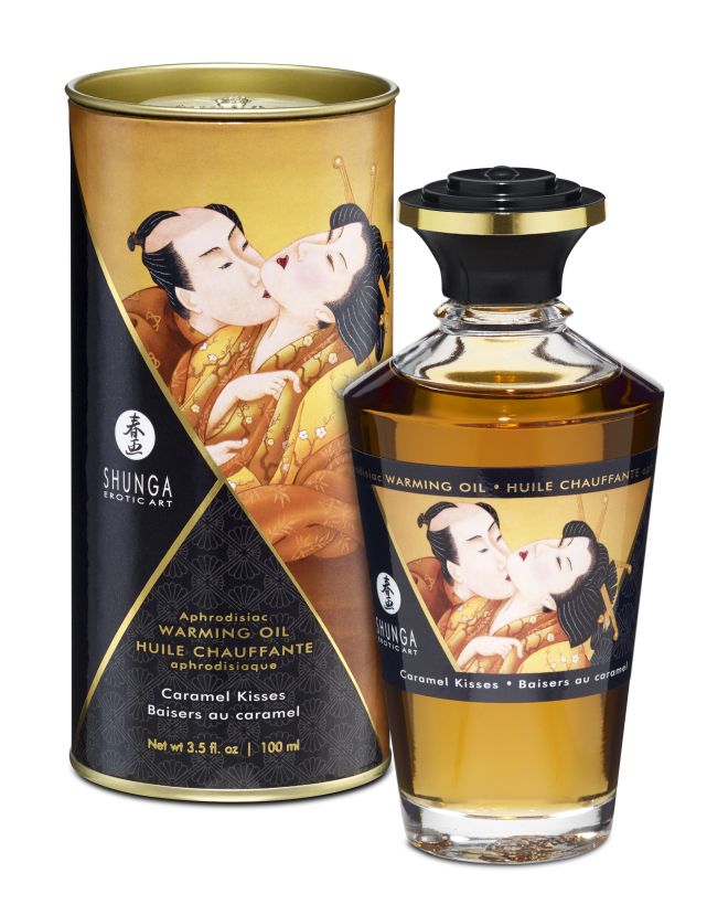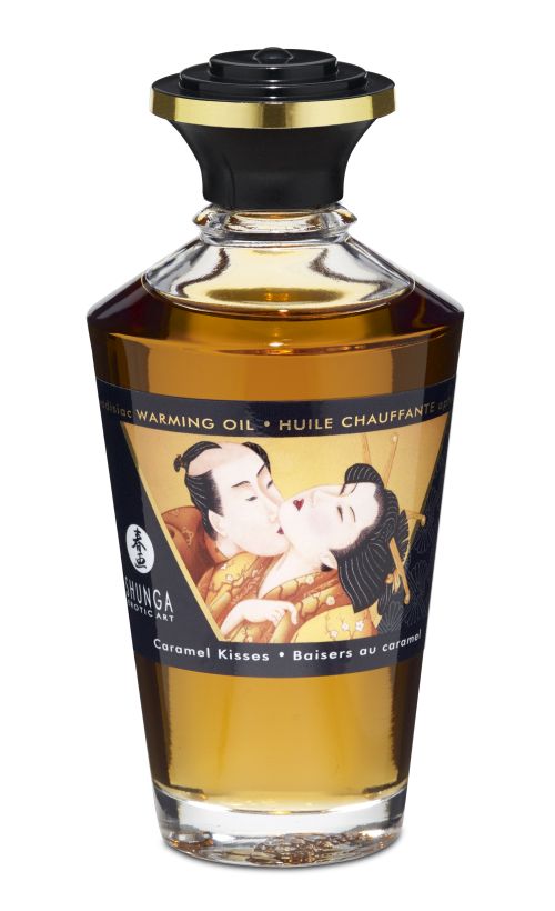 Разогревающее и съедобное масло для тела с натуральными вкусом Карамельный поцелуй Shunga Afrodisiac Warming Oil.