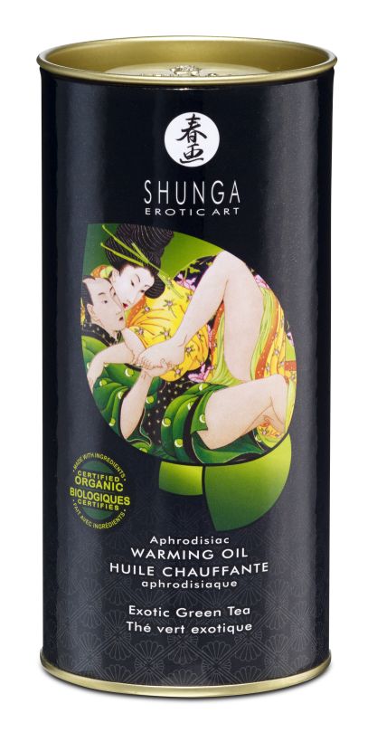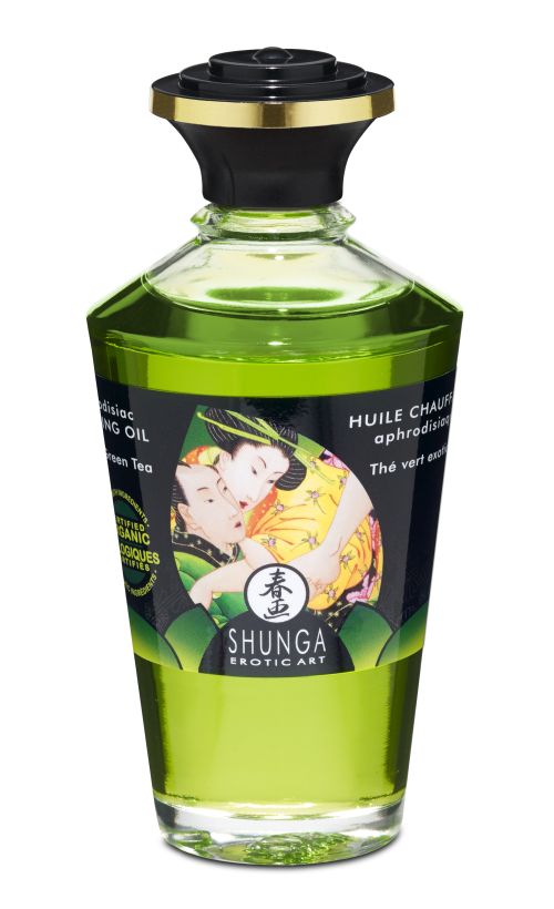 Разогревающее и съедобное масло для тела с натуральными вкусом ЗЕЛЕНОГО ЧАЯ Shunga Afrodisiac Warming Oil.