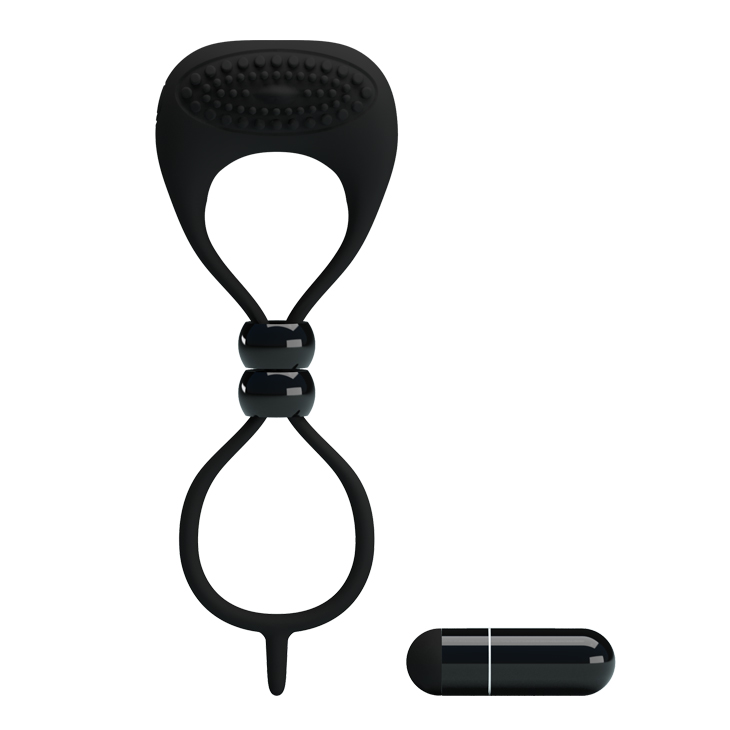 Черное вибро-кольцо лассо на пенис с мощной вибрацией и выпуклыми элементами для стимуляции клитора.