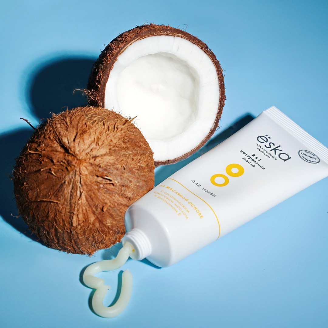 Натуральное масло 2 в 1 Ёska на масляной основе с органическим кокосовым маслом и витамином Е.