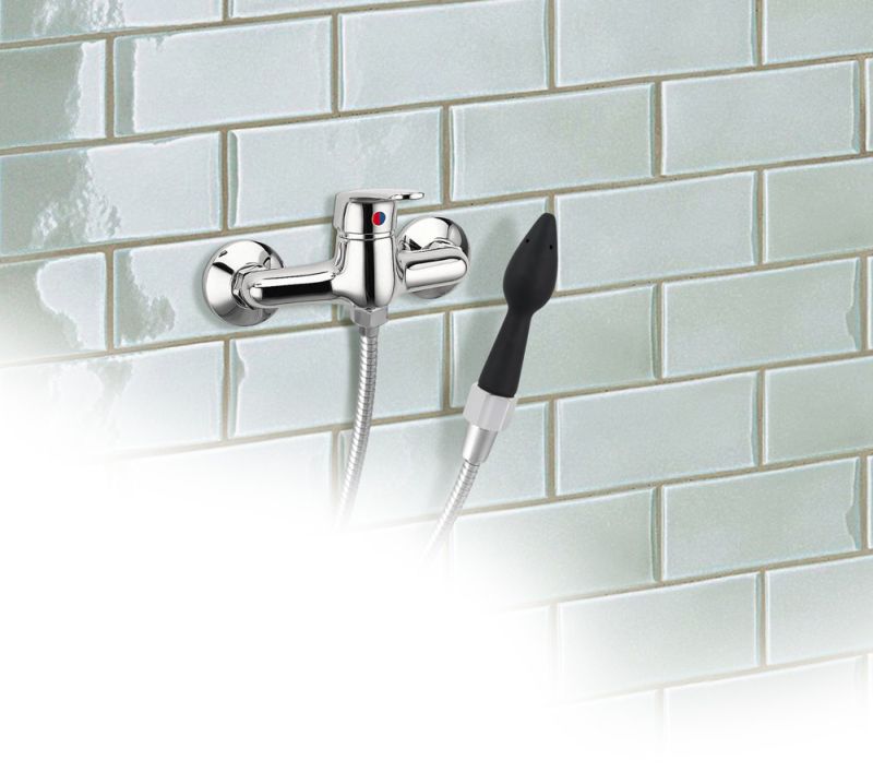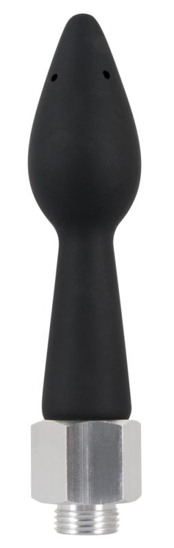 Интимный душ с анальной насадкой, выполненной из черного силикона для анального использования. Интимный душ (с резьбой) можно прикрутить к шлангу для душа. Конусообразная насадка имеет 5 отверстий (одна на конце стулки).