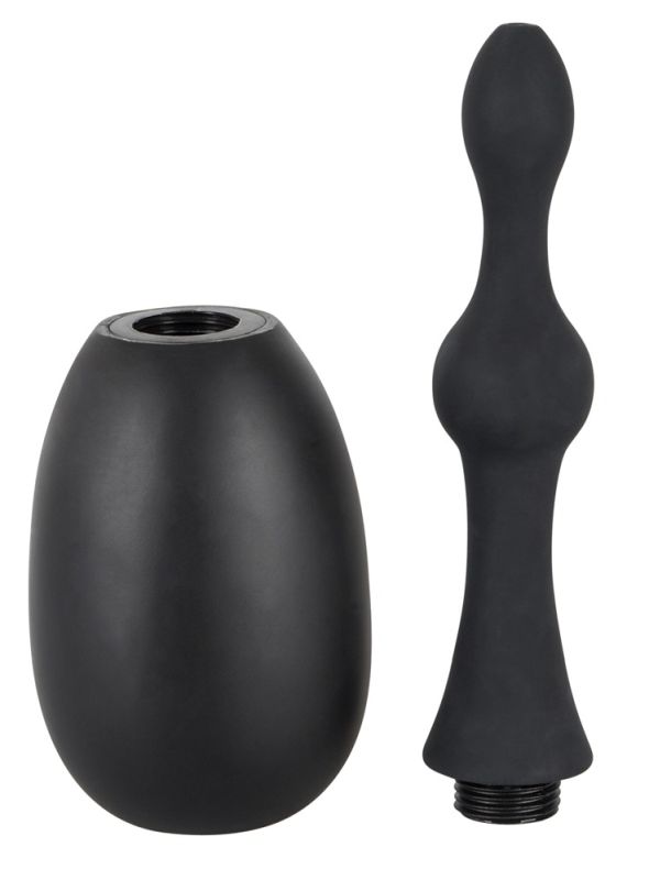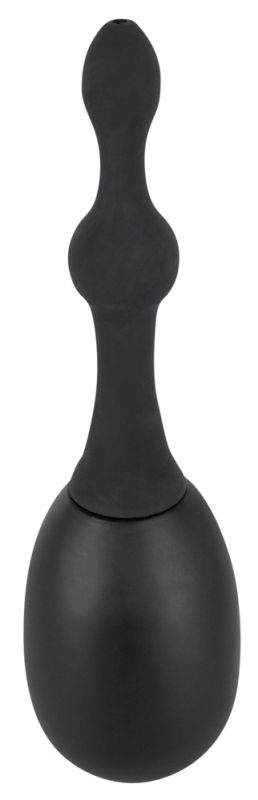 Черный анальный душ с короткой насадкой. 14-сантиметровая насадка имеет более толстый наконечник и стимулирующий шарик. Полная длина 23,5 см, насадка Ø от 1,1 до 3 см. Материал: силикон, без фталата согласно EU REACH.