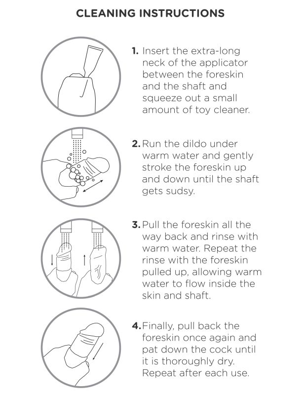 Обязательно промывайте крайнюю плоть фаллоимитатора после использования.