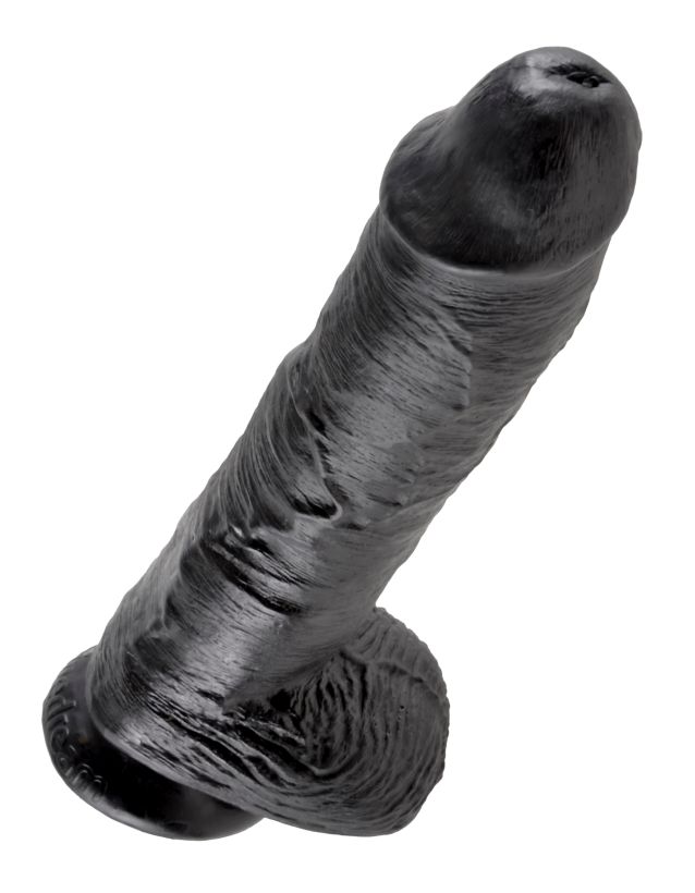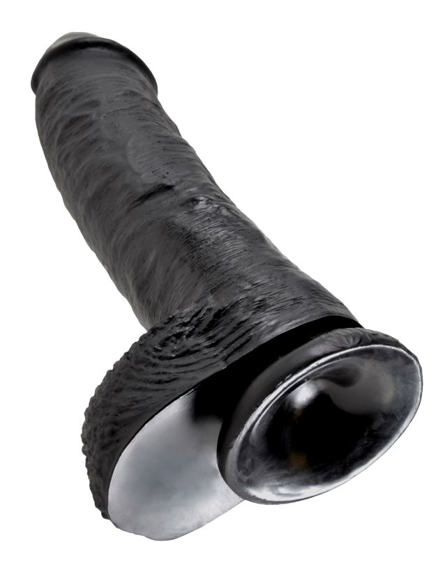 Фаллоимитатор-гигант на присоске с мошонкой черный King Cock 10 Cock