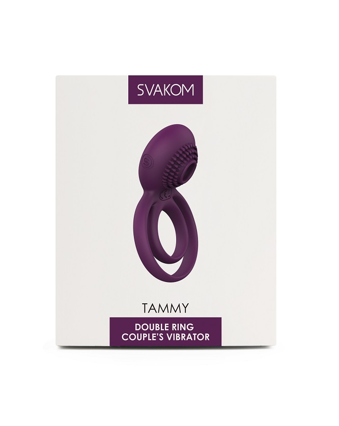 Tammy фиолетовое эрекционное виброкольцо с подхватом мошонки SVAKOM, c вибрацией, длина 8.00 см, диаметр 4.20 см можно купить в Асткол по оптовой цене онлайн