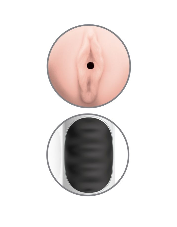 Вибромастурбатор в тубе, изготовлен из ультра-реалистичного Fanta Flesh и заключенный в прочный ABS-пластик, оснащен мягкой областью в середине TPU, позволяющим сжимать текстурированный мастурбатор и точно контролировать давление. Нажмите кнопку на основании игрушки и наслаждайтесь 10 режимами вибрации, которые распространяются по всему мастурбатору.