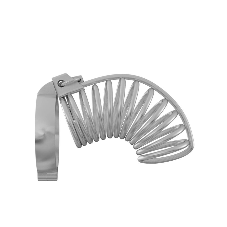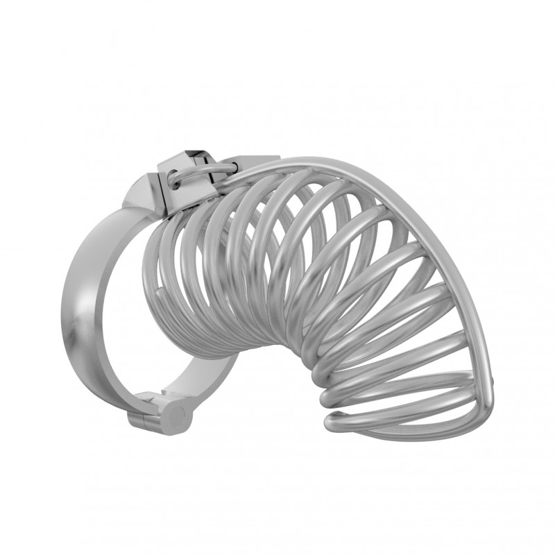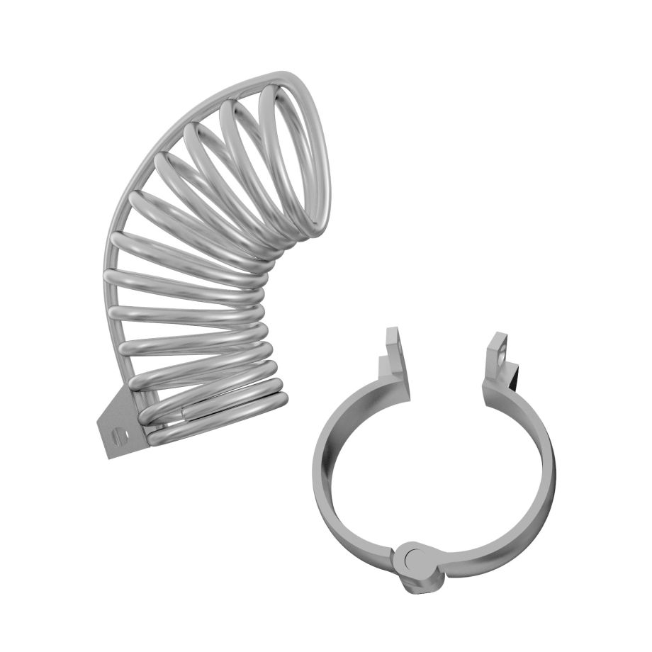 Предназначен для сессионного ношения. Позволяет совершать гигиенические процедуры.Массивный и эффектный, используется в ролевых играх, эротических забавах и БДСМ- практиках. Сбруя в виде колец фиксируется в области основания яичек. при помощи съемного раздвижного обруча. Небольшой замок и ключ в комплекте.