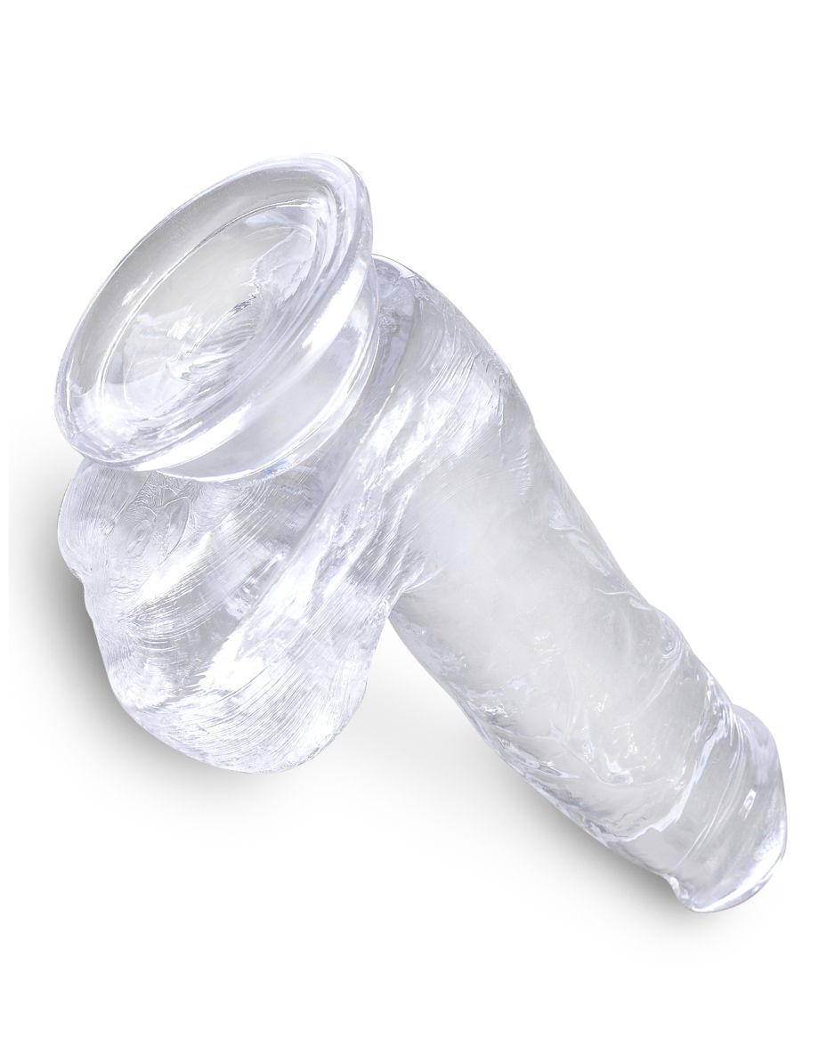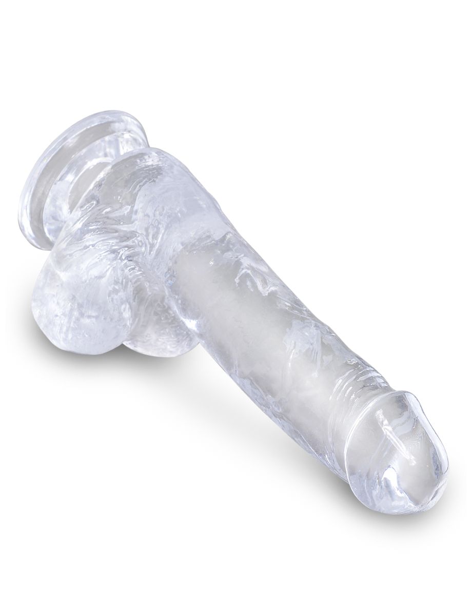 Безопасный для тела и без фталатов, 6-дюймовый прозрачный фаллоимитатор на присоске King Cock с текстурной ПВХ-поверхностью легко очищается теплой водой с мылом или хорошей жидкостью / пеной для ухода за игрушками. Совместим с любыми лубрикантами.