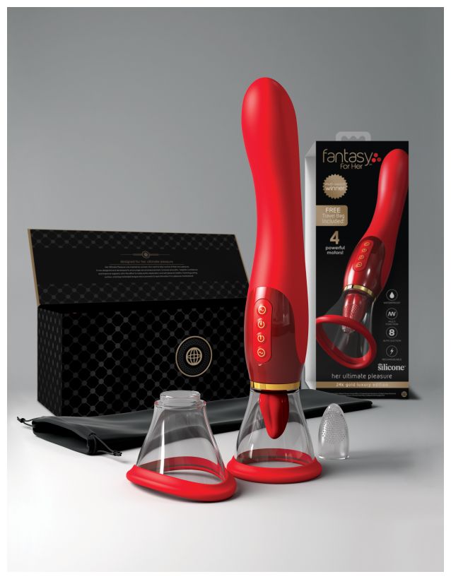 Двухсторонний вибростимулятор с помпой и имитатором языка ЛЮКС ВЕРСИЯ Fantasy For Her Ultimate Pleasure 24K Gold Luxury Edition