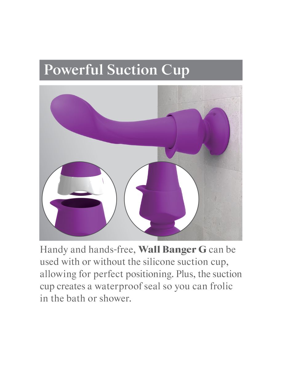 В комплект поставки Wall Banger G входит мощная силиконовая присоска, которую вы можете устанавливать для удобного использования без помощи рук! Он не только обеспечивает идеальное позиционирование, но и делает водонепроницаемым уплотнение, чтобы вы могли безопасно использовать его в душе. С присоской или без, Wall Banger G - это всегда удовольствие. Ремешок на основании игрушки позволит не волноваться,что вы можете выпустить Wall Banger G из рук.