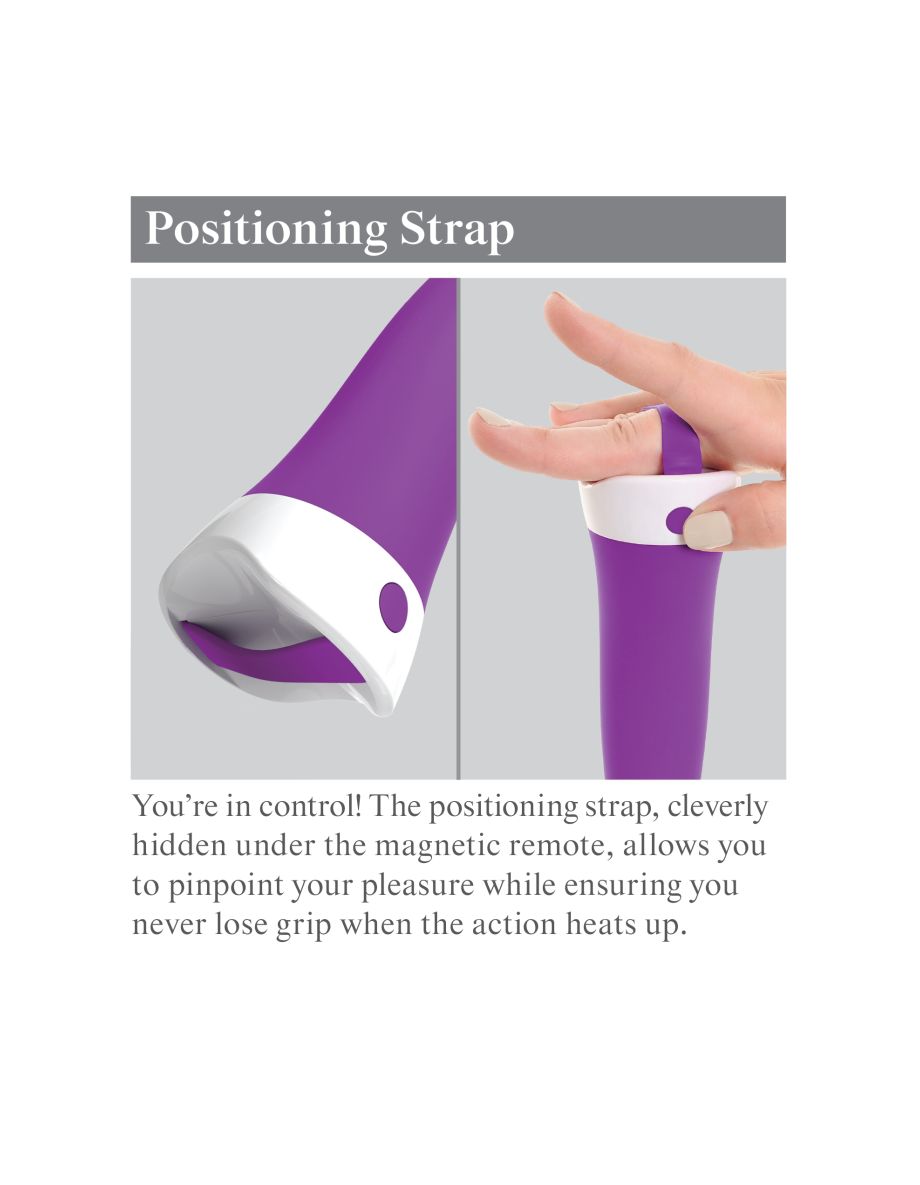 Простая кнопка управляет 10 различными функциями этой игрушки, или для развлечения с партнером или без рук, вы можете использовать прилагаемый пульт дистанционного управления. После использования пульт можно закрепить на базе игрушки - его магнитные элементы прекрасно удерживают пульт на основании стимулятора.