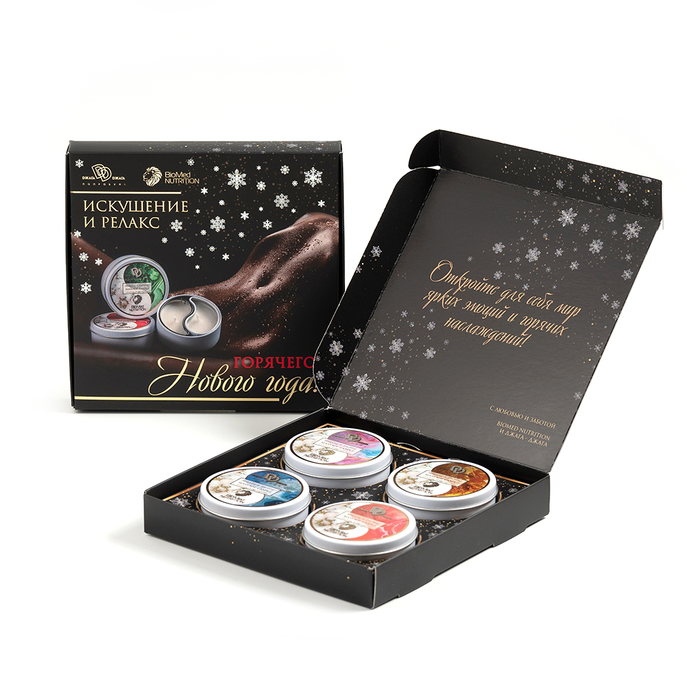 В наборе 4 разных массажных свечи с удивительными ароматами, которые по настоящему создадут романтическую атмосферу, помогут расслабиться и раскроют ваши самые сокровенные желания.