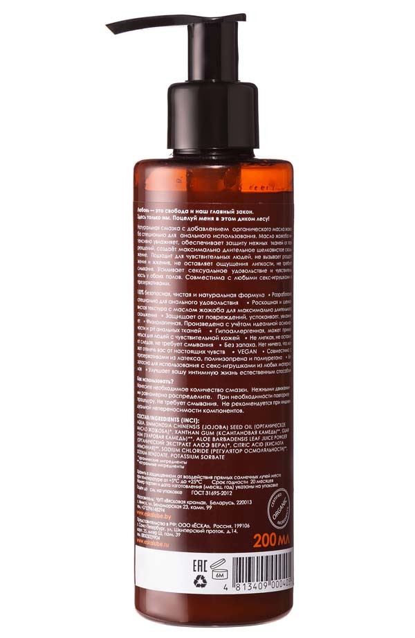Ёska "Дикий лес" на водно-масляной основе с добавлением органического масла жожоба специально для анального использования.