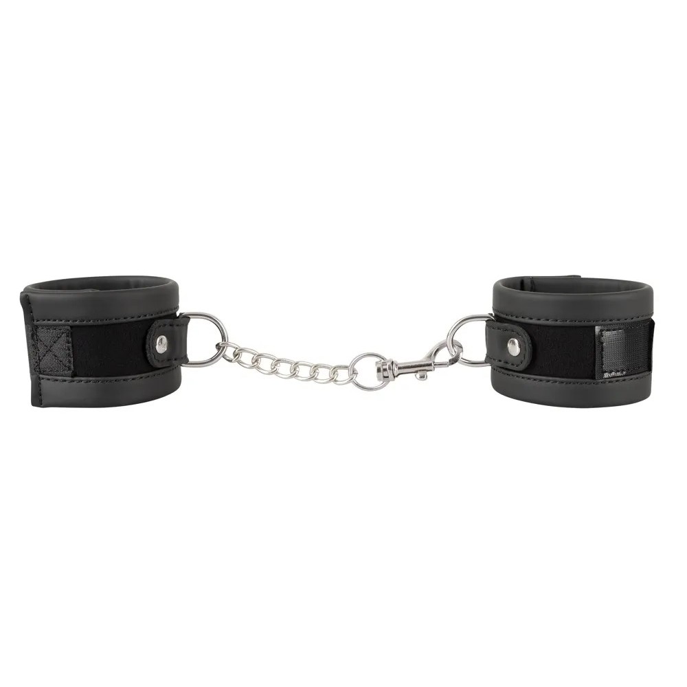 Наручники имеют практичные застежки-липучки и съемную соединительную цепочку. Веганские.