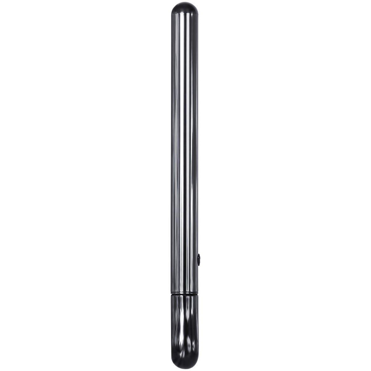 Зарядное устройство USB ввинчивается в базу для надежной зарядки, а всю игрушку можно полностью погрузить в воду для использования в душе или ванной — в любое время! Идеально подходит для путешествий, его непористая металлическая поверхность очень гигиенична и легко моется с помощью клинера и теплой воды. Сверхтонкий и компактный металлический корпус выглядит как ручка для максимальной свободы действий. Легко помещается в любую сумочку. Стильная черная хромированная отделка, 5 скоростей вибрации и функций. Простота в использовании. Однокнопочное управление из нержавеющей стали