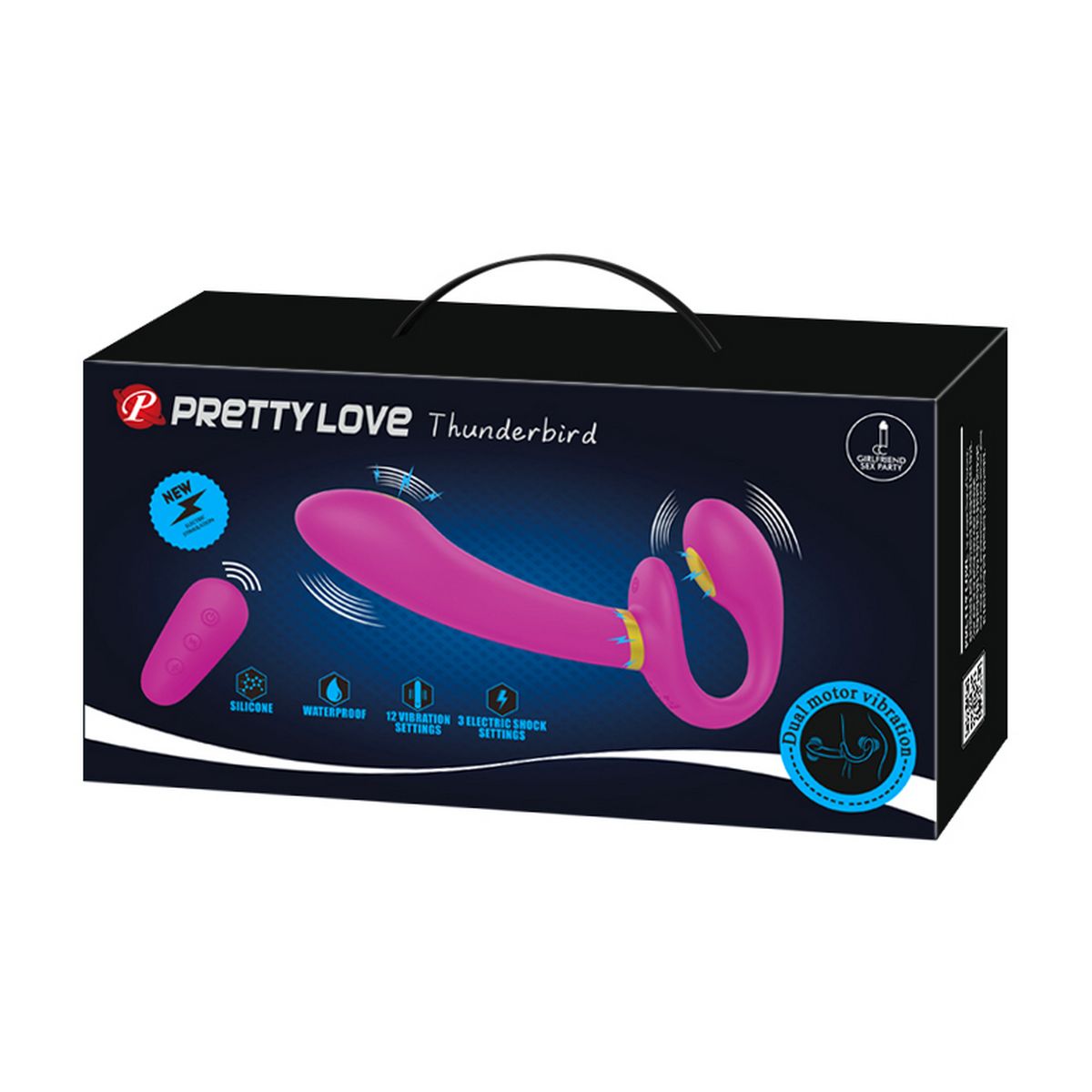 Thunderbird безремневой страпон имеет 12 режимов вибрации и 3 режима электростимуляции обещает вам более спонтанный и непрерывный опыт.