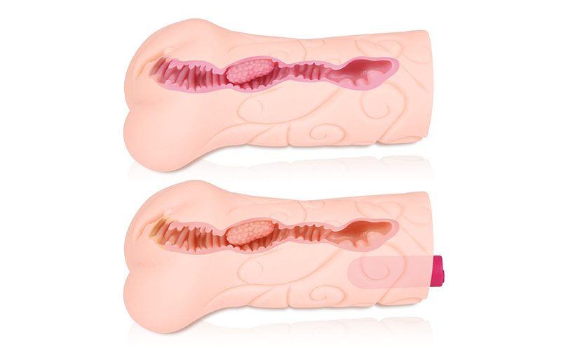 Крупный мастурбатор с узорами на внешней стороне, рельефной точкой G, вибропулю, складками и тремя шариками для стимуляции головки пениса.