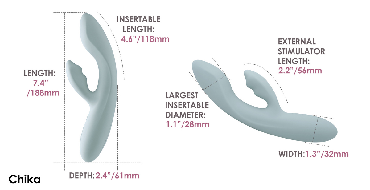 Chika имеет мягкую головку, которая прижимается к точке G, где бы она ни была, и независимый стимулятор клитора, все они изготовлены из мягкого жидкого силикона. Попробуйте вибрацию в 5 режимах, 5 уровнях интенсивности (25 вариантов и больше) и бонусном интеллектуальном режиме, который имитирует ритм секса в течение 4 минут.