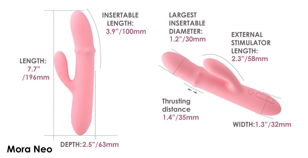 Изготовленный из мягкого на ощупь жидкого силикона, Mora Neo оснащен кольцом с бусинами, которое встроено в его полужесткий стержень, а также независимым стимулятором клитора. Проявите творческий подход, подключив Mora Neo к смартфону с поддержкой Bluetooth, а затем используйте приложение SVAKOM для настройки параметров или наслаждайтесь длительным управлением игрушкой или взаимодействием с партнером.