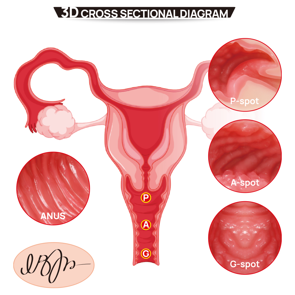 • Непревзойденный реализм: Благодаря точному слепку интимной зоны и внутреннему рельефу, изделие в мельчайших деталях повторяет анатомию женского тела. От плотных стенок до изгибов и даже реалистичной шейки матки — каждый элемент мастурбатора создан для максимальной естественности.