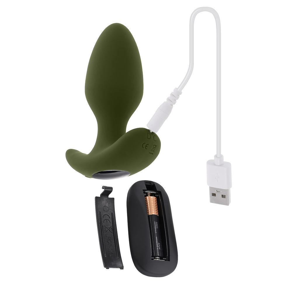 The Colonel — это массивная вибрирующая пробка с дружелюбной округлой формой и суженным круглым кончиком для плавного введения. Её мощный мотор управляется с помощью пульта дистанционного управления или кнопки на широком основании.