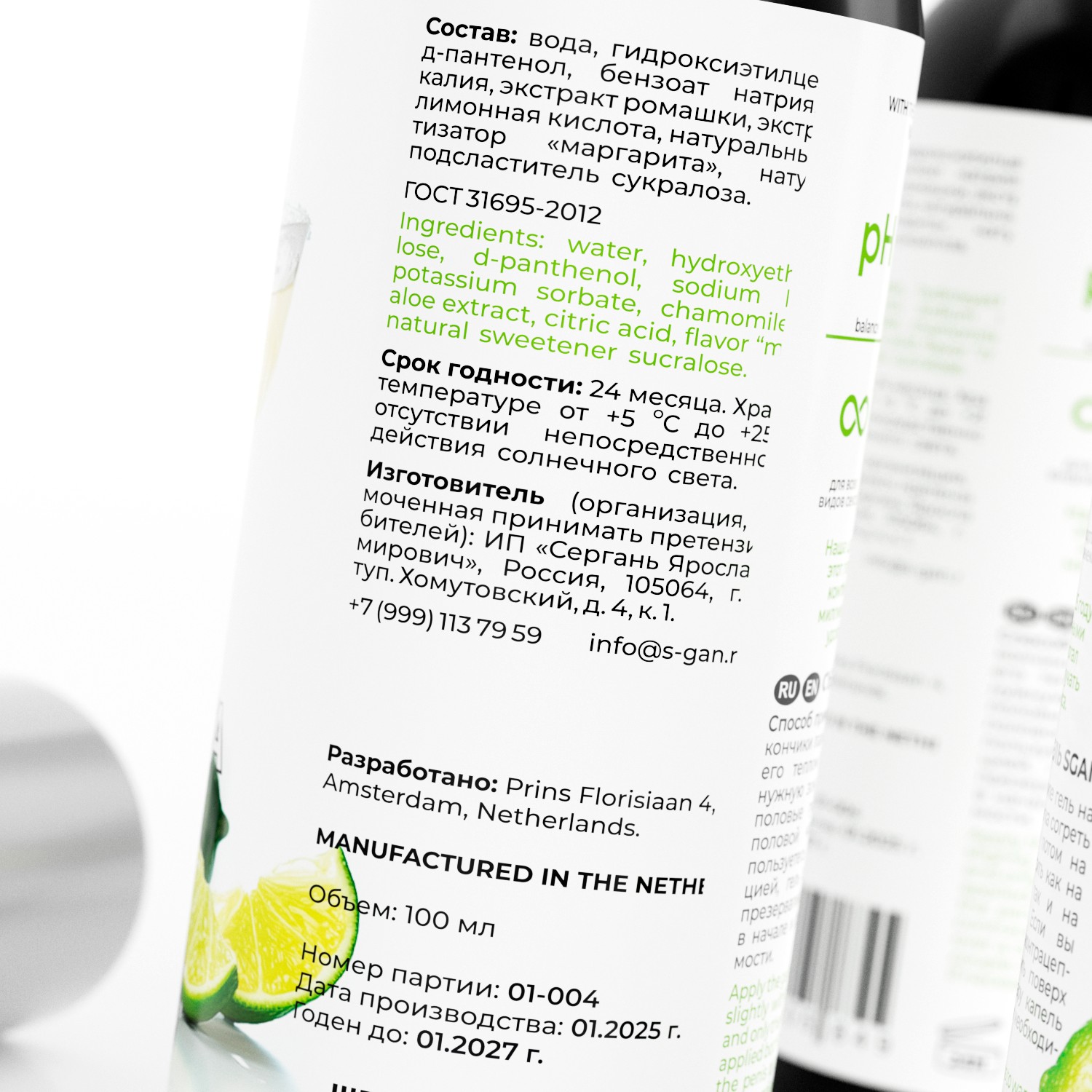 Состав: Вода, гидроксиэтилцеллюлоза, д-пантенол, бензоат натрия, сорбат калия, экстракт ромашки, экстракт алоэ, лимонная кислота, натуральный ароматизатор "Маргарита", натуральный подсластитель (сукралоза).