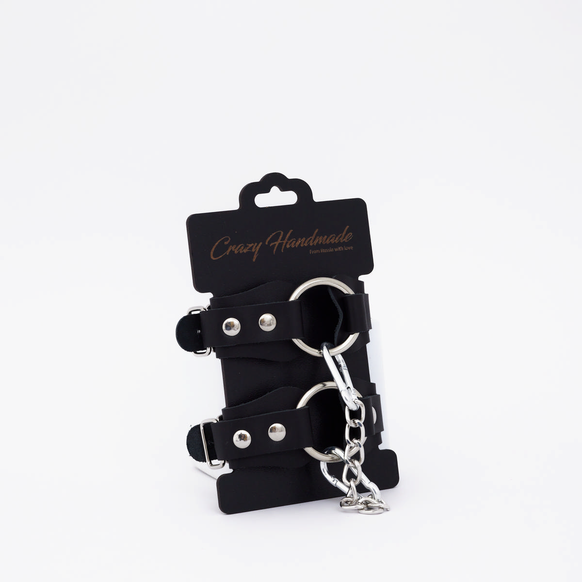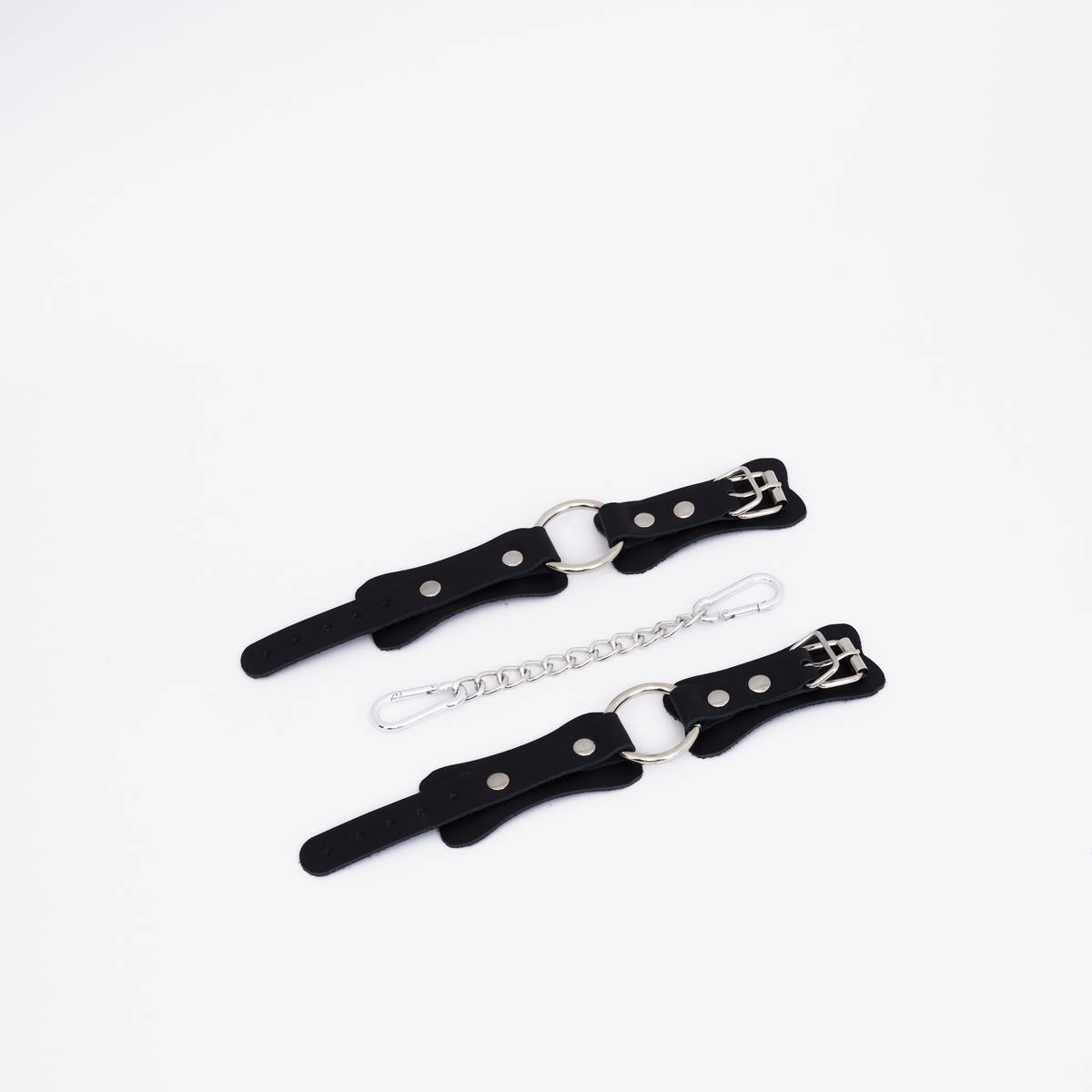 Изделие состоит из двух ремешков из натуральной кожи , соединенных посередине. Их лаконичный дизайн позволяет использовать их не только для фиксации рук в любовных играх, но и как модный аксессуар, который украсит ваш повседневный или вечерний образ. В комплект входит стальное кольцо и соединительный элемент в виде прочной цепочки с двумя надежными карабинами , которые обеспечивают стабильность и контроль.