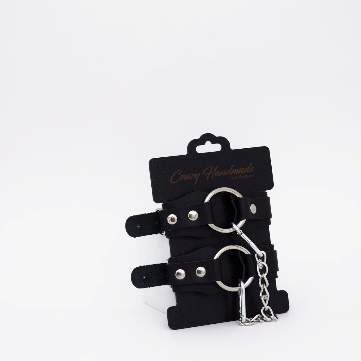 Изделие состоит из двух ремешков из натуральной кожи , соединенных посередине. Их лаконичный дизайн позволяет использовать их не только для фиксации рук или ног в любовных играх, но и как модный аксессуар, который украсит ваш повседневный или вечерний образ. В комплект входит стальное кольцо и соединительный элемент в виде прочной цепочки с двумя надежными карабинами , которые обеспечивают стабильность и контроль.