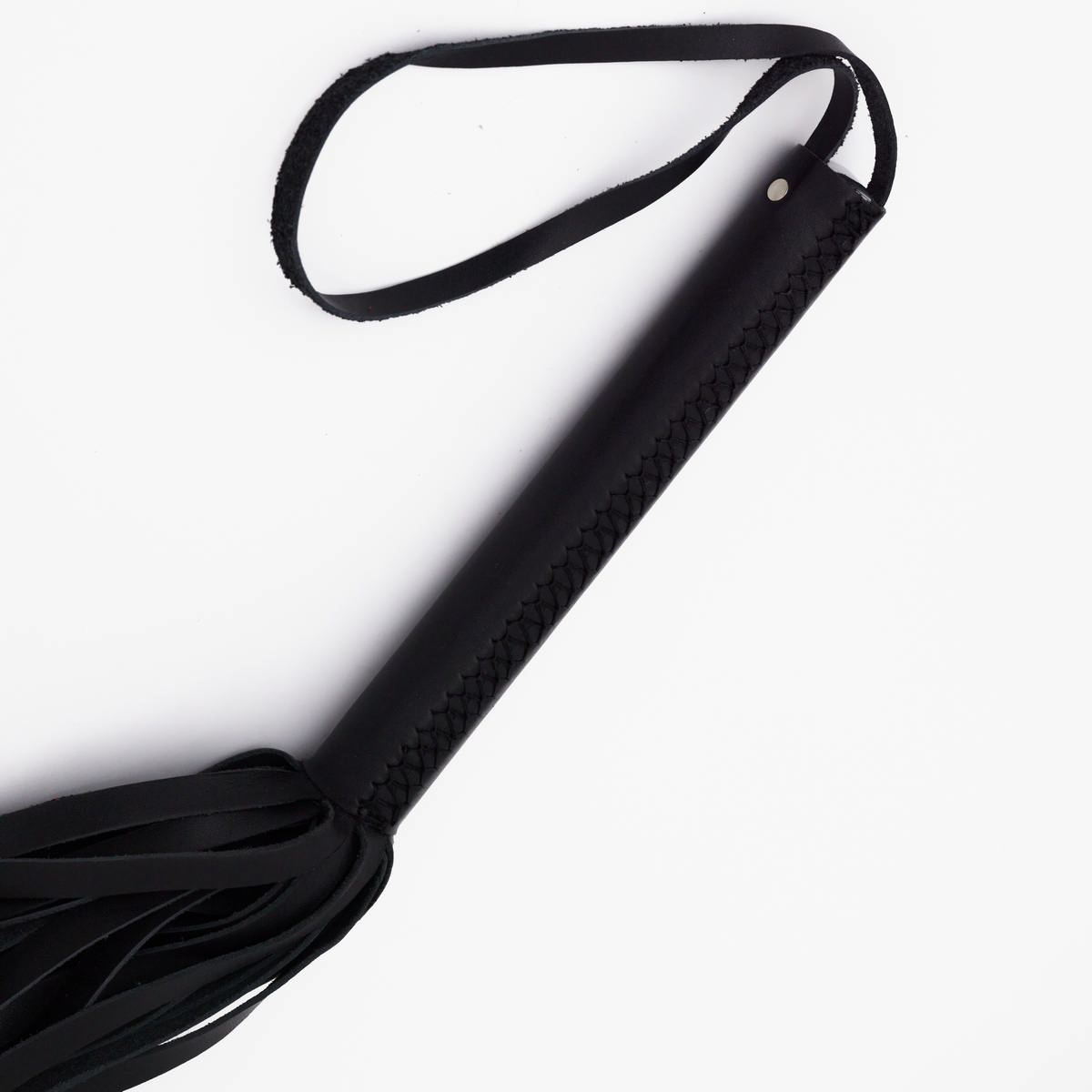 На конце ручки предусмотрена ручка-петля , которая служит для дополнительной фиксации флоггера на запястье, обеспечивая безопасность и контроль во время использования. Баланс веса между ручкой и ударной частью тщательно выверен, что позволяет делать удары точными и разнообразными, создавая уникальные ощущения.