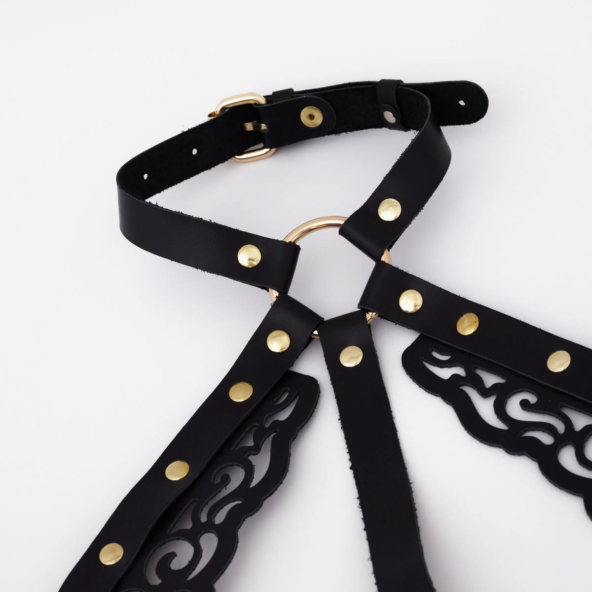 Изделие выполнено из натуральной кожи , что обеспечивает мягкость, долговечность и приятные тактильные ощущения. Портупея дополнена фурнитурой высокого качества из золотистой стали , которая добавляет изделию прочности и благородного блеска. Ремешки соединены между собой кольцами , что делает конструкцию устойчивой и функциональной.