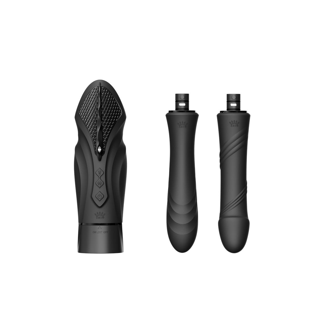 Компактная секс-машина с функцией нагрева, двумя насадками и присоской SESH, чёрная ZALO, c вибрацией можно купить в Асткол по оптовой цене онлайн