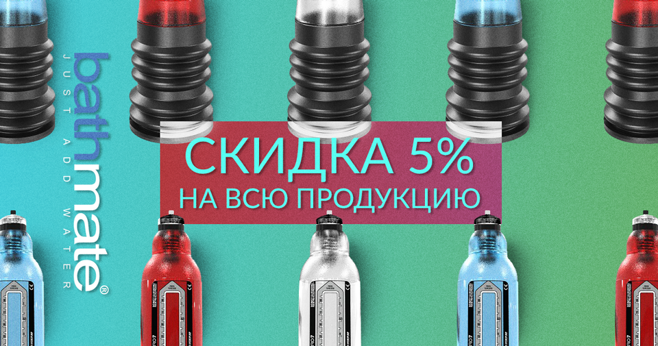С 23 мая по 6 июня 2021 года включительно даем дополнительную скидку 5% на всю продукцию Bathmate.