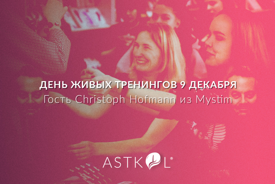 9 декабря 2021 года с 10:30 до 17:30 в конференц-зале, в офисе Асткола (проезд Серебрякова, 14б, стр. 7, 3 этаж) пройдут живые тренинги. Специальный гость — Christoph Hofmann из Mystim.