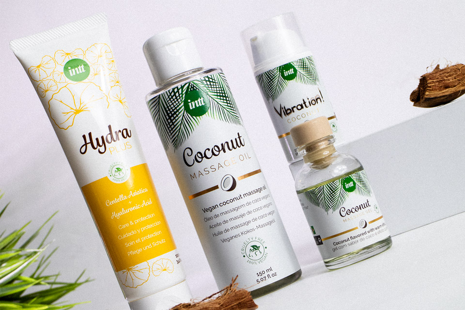 Новую, веганскую, органическую, во всех смыслах френдли — линейку продуктов Intt. Жидкий вибратор, массажный гель и массажное масло со вкусом кокоса. А еще лубрикант на водной основе с восстанавливающими и увлажняющими свойствами.