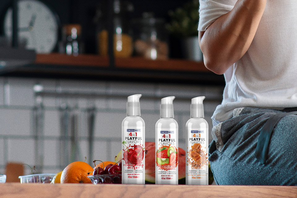 Привезли новую порцию Swiss Navy, с теми самыми новинками. Смазка, массажный гель, съедобный и разогревающий гель. В одной упаковке. Вкусы: шоколад, вишня, клубника с киви, маракуйя и самый трендовый — соленая карамель.