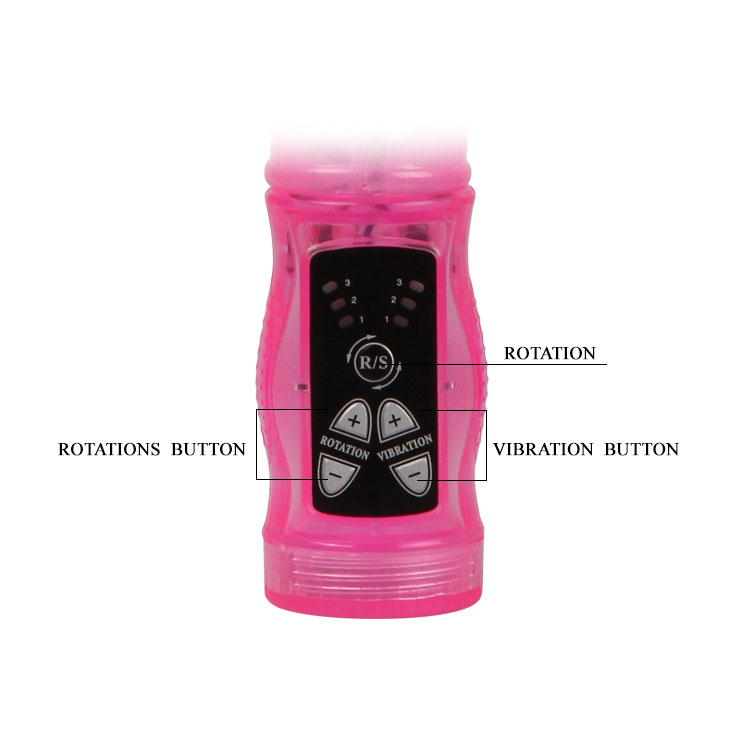 Один моторчик находится в стволе фаллоса, который вращается в 3-х весьма впечатляющих по скорости режимах, есть функция реверса (при помощи кнопки на ручке можно изменить направление вращения). Когда головка фаллоса вращается, она массажирует точку G.