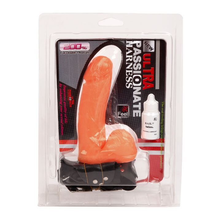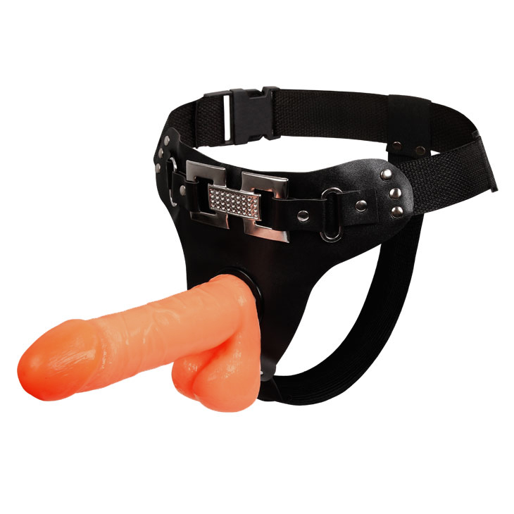 Фаллопротез женский на мягких трусиках - вагинальный фалоиммитатор реалистичной формы телесного цвета. Крепится на трусиках с эластичными ремнями креплениями, сами трусики украшены стильной пряжкой в виде двух колец. В комплект изделия входит тальк для ухода за насадкой.