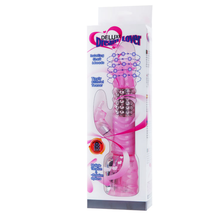 Вибромассажер с вращающимися шариками и дополнительным стимулятором для клитора в виде кролика. Многоскоростной мини электромотор.