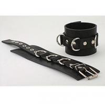 Наручники неподшитые. Имеют застежку - ремешок с металлической пряжкой. 3 сварных D - кольца. Без соединительной фиксации. Ширина 6,5см. Диаметр 5-8см. Материал: натуральная кожа.