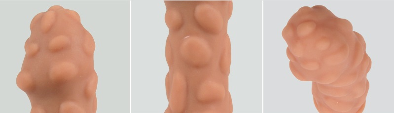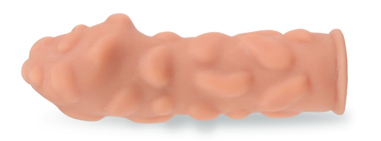 Насадка очень эластичная, имеет крупные бугорки и рельеф по всей поверхности, для стимуляции эрогенных зон партнера, увеличивает толщину головки и ствола пениса.