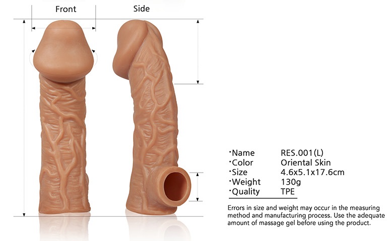 Насадка очень эластичная, имеет узор выпуклые венки по всей поверхности, для стимуляции эрогенных зон партнера, увеличивает толщину головки и ствола пениса. Специальное круглое отверстие у основания позволяет надежно фиксировать насадку на члене без лишних усилий.