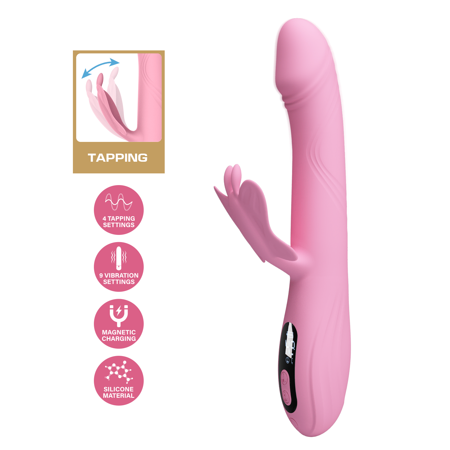 Двойное действие: изогнутый стержень для стимуляции G-зоны и "крылья бабочки" для нежных пульсаций клитора